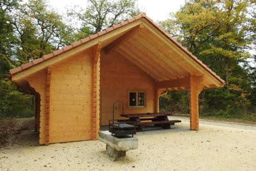 - Couvert avec une table extérieure et bancs pour environ 10 personnes